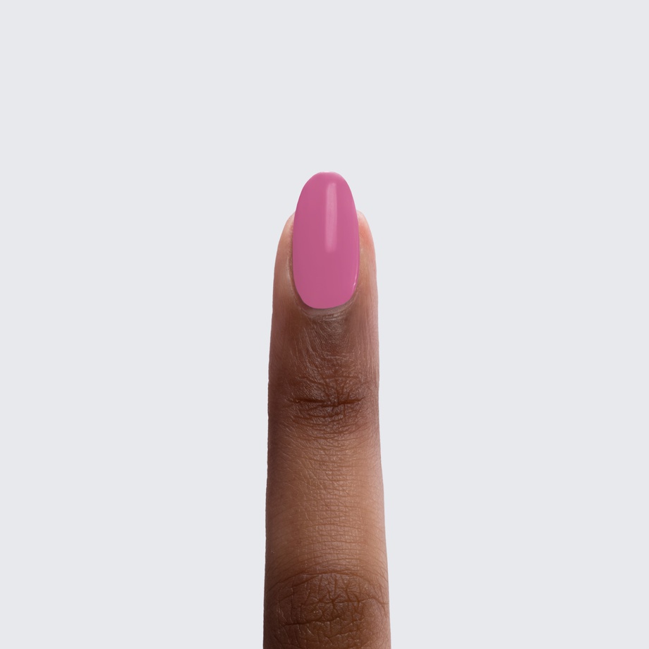 Bubble-gum pink. Muted. Opaque. Warm undertone. Light.